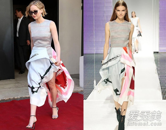 Jennifer Lawrence身穿Christian Dior 彩色拼接礼服裙走上红毯,干净、利落引入眼帘。不能说谁好看谁难看,这一局感觉难分胜负。话说Christian Dior 彩色拼接礼服裙还真是神奇,各种风格随心演绎呢~~