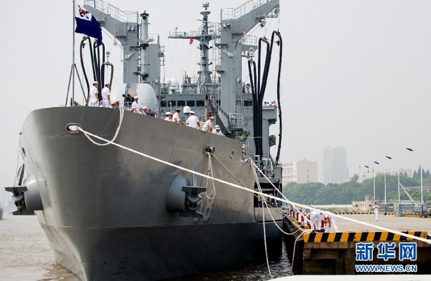 8月29日,由韩国海军“姜邯赞”号导弹驱逐舰和“大清”号补给舰组成的舰艇编队在韩国海军士官学校副校长金锺三准将的率领下,驶抵上海吴淞军港码头,开始对上海进行为期3天的友好访问。新华社发