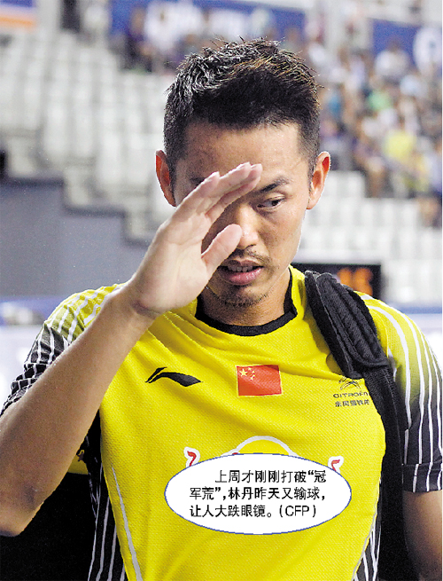 上周在日本公开赛上打破“冠军荒”的中国队“全满贯”林丹,昨天在韩国公开赛男单次轮以0比2不敌东道主头号男单孙完虎,这是他与对手的8次交锋中首次落败。不过,昨天出局并不妨碍林丹继续提升自己的世界排名,目前他已从第5位升到第3位。