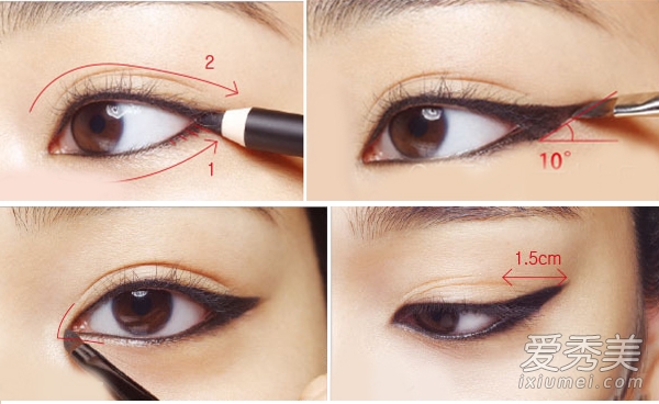 宝儿的MV妆容、李孝利的标配妆容,想画出经典款式的猫眼,全部照着这个画准没错。