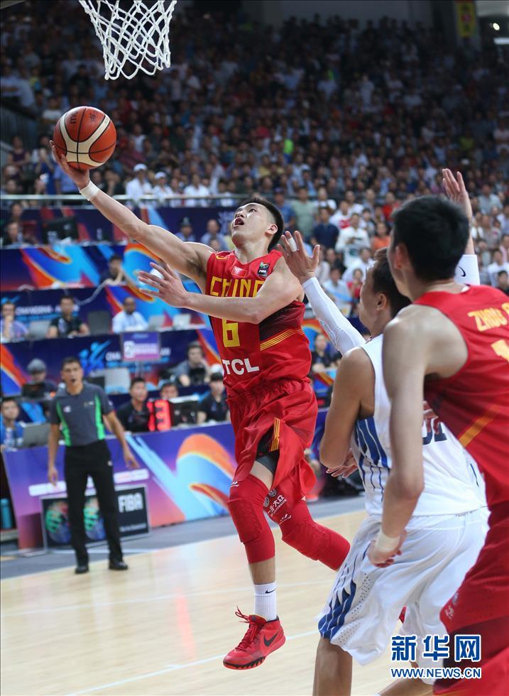 9月24日,中国队球员郭艾伦(左)突破上篮。当日,在湖南长沙举行的2015亚洲男篮锦标赛小组赛C组比赛中,中国队以76比73战胜韩国队,取得两连胜。 新华社记者孟永民摄