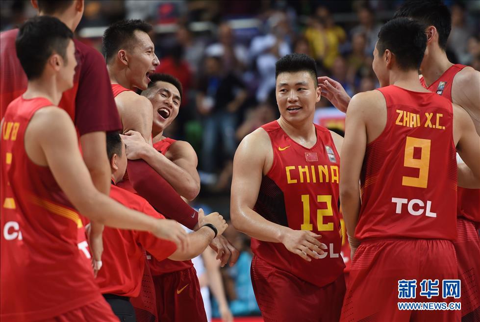 9月24日,中国队球员易建联(左三)和队友欢庆胜利。当日,在湖南长沙举行的2015亚洲男篮锦标赛小组赛C组比赛中,中国队以76比73战胜韩国队,取得两连胜。 新华社记者李尕摄