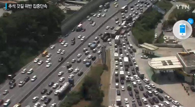 25日下午韩国高速公路的一些路段已出现拥堵现象(网页截图)
