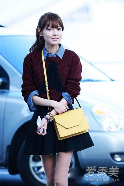 毛衣+衬衫的搭配依旧可以在这个秋冬尝试,有点学院风的味道,搭配A字短裙,俏皮又可爱的少女风格。