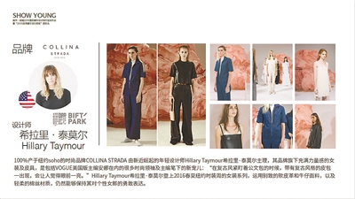 美国设计师希拉里·泰莫尔被称为“混合材质新玩家”,她打造的时装品牌Collina Strada,被誉为十大新兴纽约品牌,她将皮革、牛仔和丝麻的全新处理,展示出极简、干净利落的设计风格。她说:“平时生活中看到的建筑也会给我带来灵感,在新一季的设计中,我设计的衣服都具有线条感和立体感。”