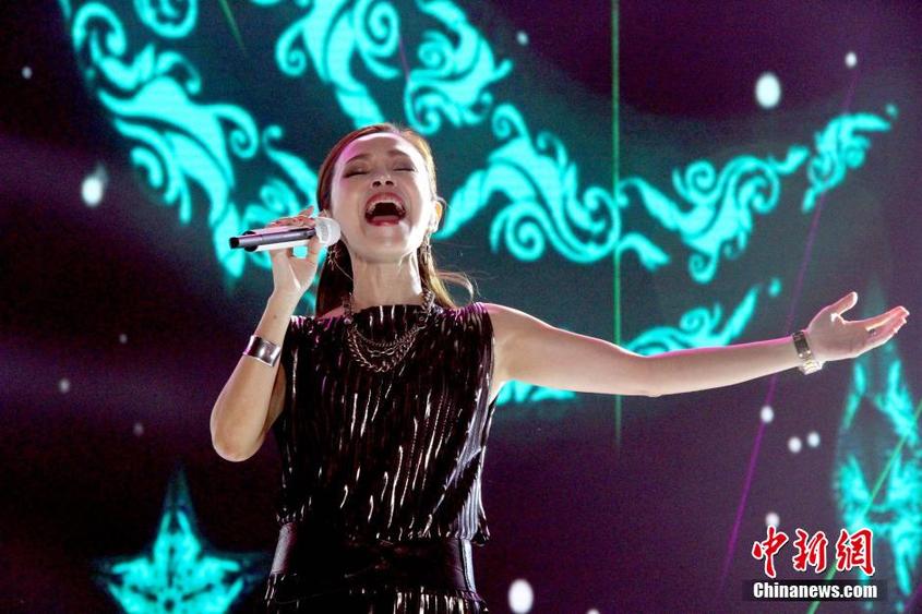 10月11日晚间,“玖玖爱·中韩群星大型公益演唱会”在天津奥体中心唱响,魏晨、Rain、李世真、Wonder Girls、吉克隽逸、张信哲、彭佳慧、至上励合、T-ARA等来自中韩时下最热的歌手和偶像团体联袂打造出演,“引爆”全场。图为台湾“铁肺歌后”彭佳慧激情高歌。 中新社记者 张道正 摄