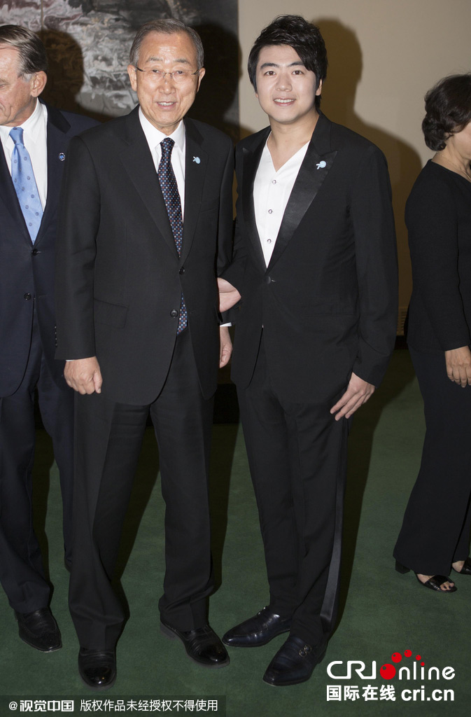10月23日,众人出席庆祝联合国成立70周年音乐会。韩国女子组合Davichi的成员姜敏京、李海丽身穿白色礼服优雅亮相,中国著名钢琴家郎朗帅气出席。