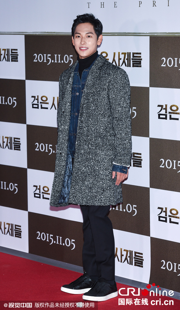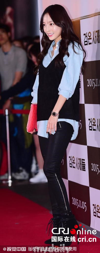 11月2日,众星出席电影《黑祭司们》VIP试映会。河智苑咖啡色麂皮大衣时尚摩登 。