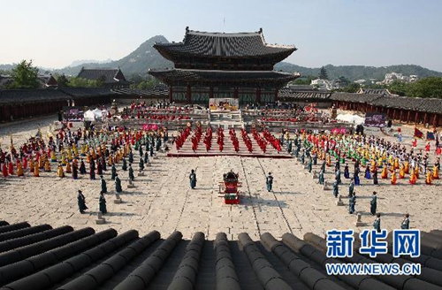 景福宫建于1394年,是李氏王朝的王宫。景福宫在韩国的地位就等同于紫禁城在我国的地位。景福宫很大一部分也是中轴式建筑群,从光化门、兴礼门、勤政门、思政殿、交泰殿一字延伸,最北端是乾清宫。景福宫内保存有朝鲜时期的代表性建筑庆会楼和香远亭莲池,勤政殿的月台和雕像代表了当时的雕刻技艺。现在兴礼门外西侧是国立古宫博物馆,景福宫内香远亭东侧是国立美术博物馆。