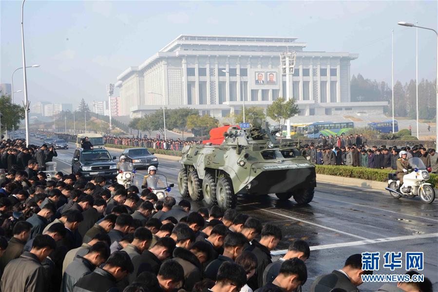 这张朝中社11月12日提供的照片显示,人民军战士和平壤市民于11日早上沿街肃立,为李乙雪送行。据朝中社12日报道,朝鲜11日为已故朝鲜劳动党中央委员会委员、朝鲜最高人民会议代议员、朝鲜人民军元帅李乙雪举行国葬。朝鲜最高领导人金正恩出席葬礼。新华社/朝中社