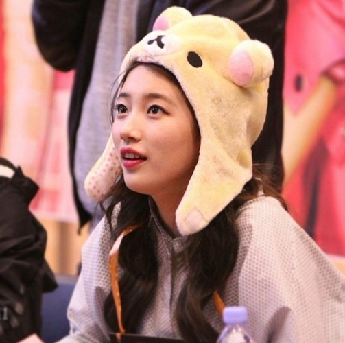 可爱的卡通小熊帽子跟秀智活泼俏皮的形象搭配的天衣无缝。这样一顶帽子不仅为秀智抵御了寒风的侵袭,更是突显了秀智的纯真少女范儿,不禁让人感叹原来美丽的外表下,秀智还保留着一颗童心。