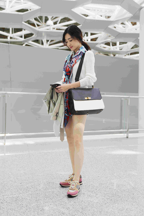被粉丝送上“素颜女神”昵称的王丽坤一身简洁的白衣配牛仔短裤出现在机场,身背Bally 2015秋冬炙手可热的新款黑白经典色B-Turn包袋,脚上的Bally Ascona粉灰拼色运动鞋更是把一双美腿衬托得修长完美。女神轻盈的脚步,甜美的笑容,无处不洋溢着优雅与温暖。整个出街造型展现活泼又不失优雅的迷人气质。信手拈来的时尚出行装扮真是让我们不得不佩服两位的搭配功力啊。