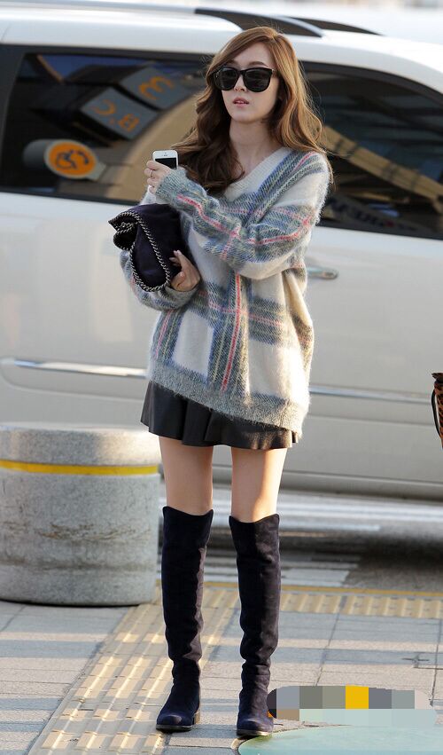 过膝长靴早已经成为一种时尚趋势,这款平底过膝长筒靴带点褶皱的设计显得十分慵懒,很好的修饰了腿形,衬托出又高又瘦的视觉效果。搭配宽松中长款头套毛衣和黑色百褶短裙,韩范儿十足,让冬季温暖与清新优雅共存。