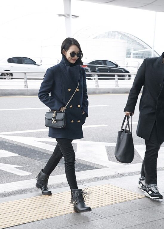 想要拥有经久不衰的造型感,非黑色短靴莫属。塑腿紧身小脚裤与黑色短靴的搭配是韩国女孩冬季日常装扮,完美地诠释了时尚休闲的气质。