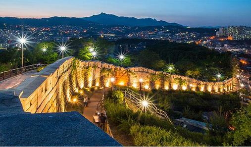 光化门广场是韩国广场的代表,也是市民休闲娱乐的中心,在这里可以感受到深厚的历史气息。夏季还可观赏五彩斑斓的喷泉夜景。站在骆山公园的城墙远眺,首尔夜景尽收眼底。南山位于首尔市中心,每到夜晚,璀璨的灯光就会照亮山顶,十分美丽。