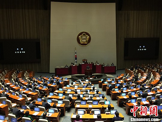当地时间11月30日下午5时许,韩国国会以196票赞成、33票反对、36票弃权的表决结果通过了中韩自由贸易协定(FTA)批准案。中新社记者 吴旭 摄
