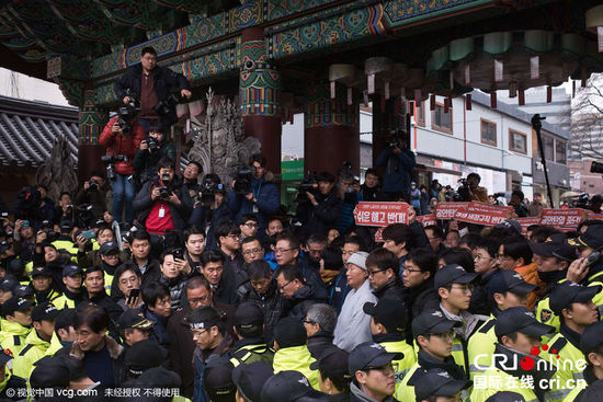 韩国警察围住寺庙 逮捕首尔示威主谋韩相均(高清组图)