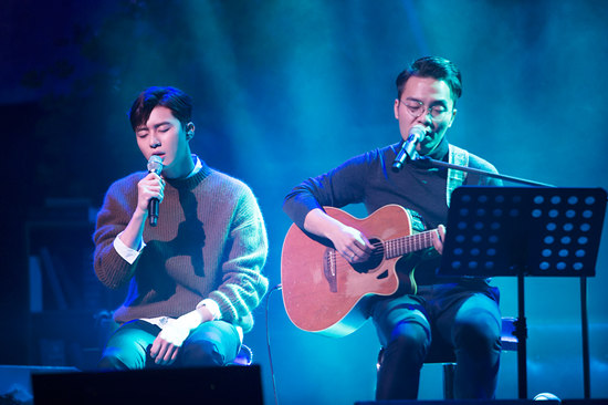 另外,他还通过演唱自己出演作品中的OST插曲《进入我的心》(魔女的恋爱)、《送你走》(KILL ME HEAL ME)、以及《远道》(她很漂亮)等共五首,展现了毫不亚于歌手的演唱实力,引起高度关注。另外,朴叙俊还邀请了曾于2012年出演的电视剧《DREAM HIGH2》中相结识的歌手金志修,两人的合唱使舞台氛围变得更为和谐,为粉丝们带来了一份感动。