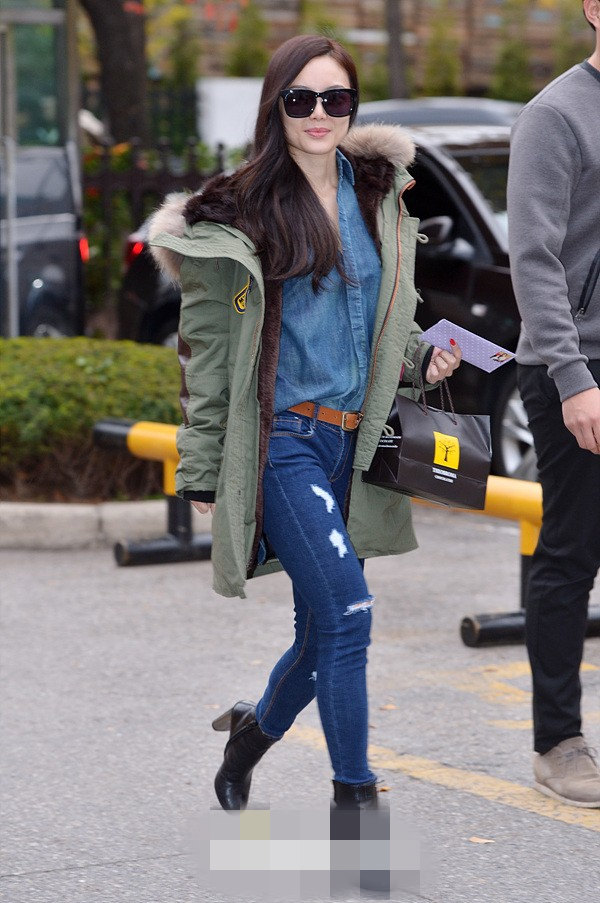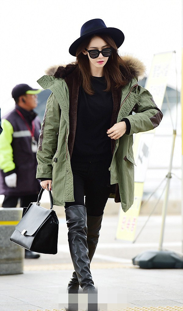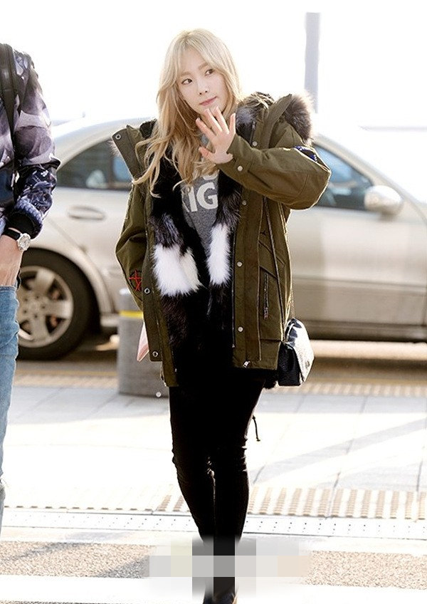 泰妍 为了减去皮草的沉重与臃肿感,很多女星选择仅仅在帽子和内衬处装饰有皮草的休闲款上衣。皮草与休闲装的完美搭配,可谓冬季御寒时尚搭配的不二之选。