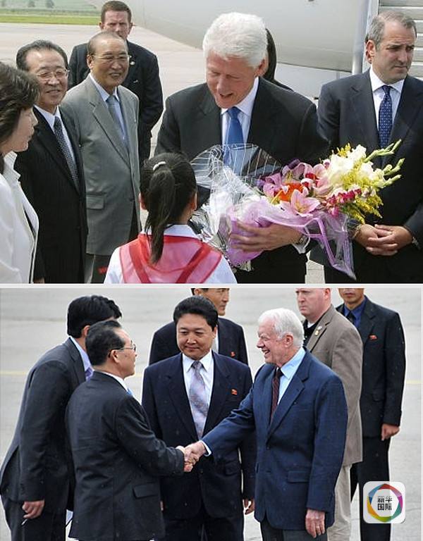 克林顿(上中)和卡特(下右)访朝“捞人”。