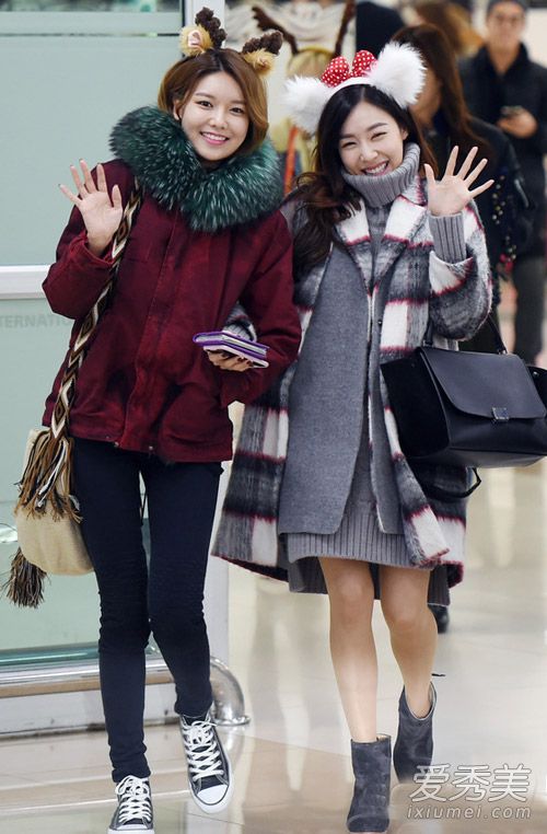 酒红色大毛领的派克大衣今冬很火,很多女明星都入手了,wuli秀英没有选烂大街的军绿色和黑色,而是酒红配绿色毛领的组合,显得个性不少。