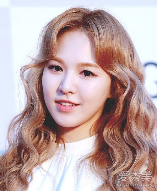 Wendy的这款泡面卷,只是在刘海上花了一点小心思就看起来很不一样哦!金黄色的发色和卷曲的中分刘海让Wendy看起来像一个混血芭比娃娃一样精致!