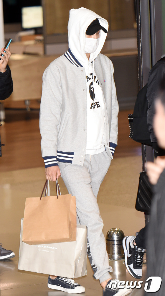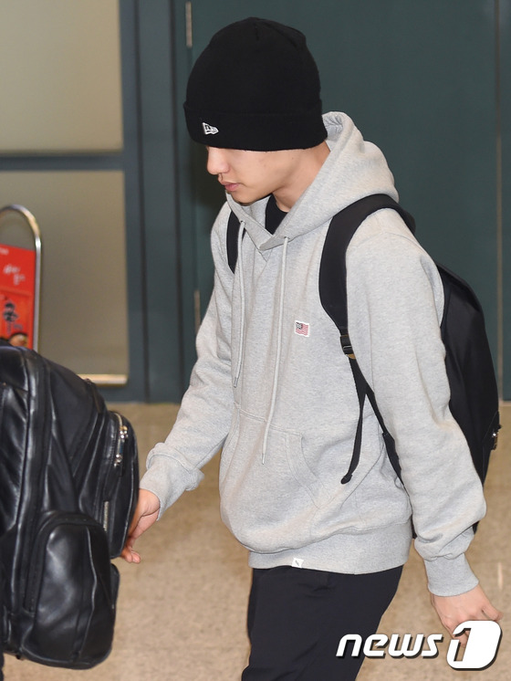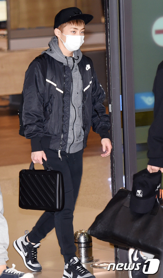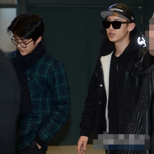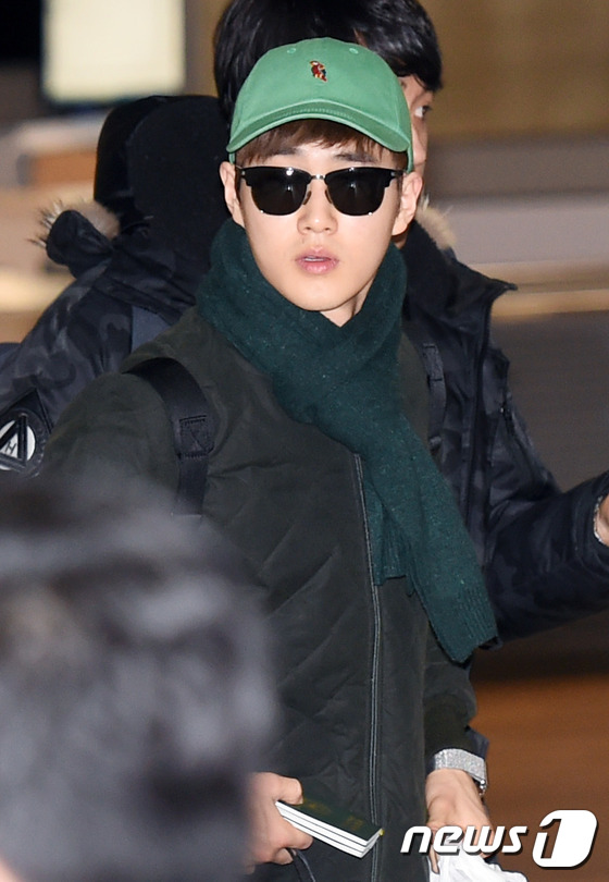2月16日,韩国组合EXO结束北美演唱会行程,经由仁川机场返韩。成员Kai、xiumin、伯贤均是口罩遮面,略显疲惫。世勋身穿条纹外套搭配黑色围巾,男友力十足。