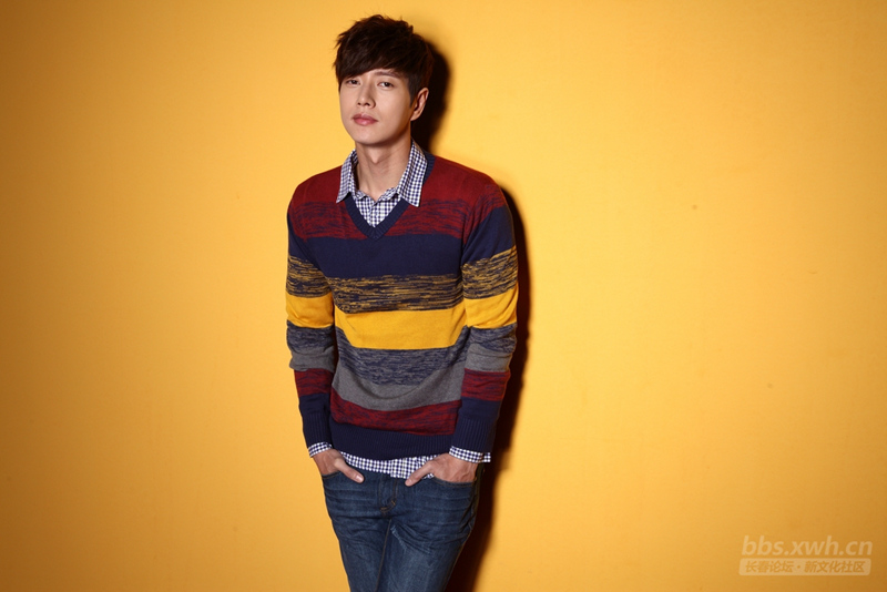 朴海镇 彩色条纹针织衫配格子衬衣,非常有活力的感觉。