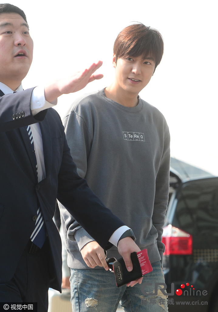 韩国,李敏镐仁川机场飞上海。 破洞牛仔裤迎早春。