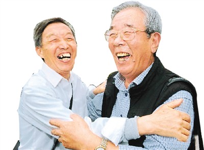 资料图:在浙江省湖州市吴兴区八里店镇潞村,韩国慎氏寻亲团成员(右)与湖州慎氏后裔相拥认亲。