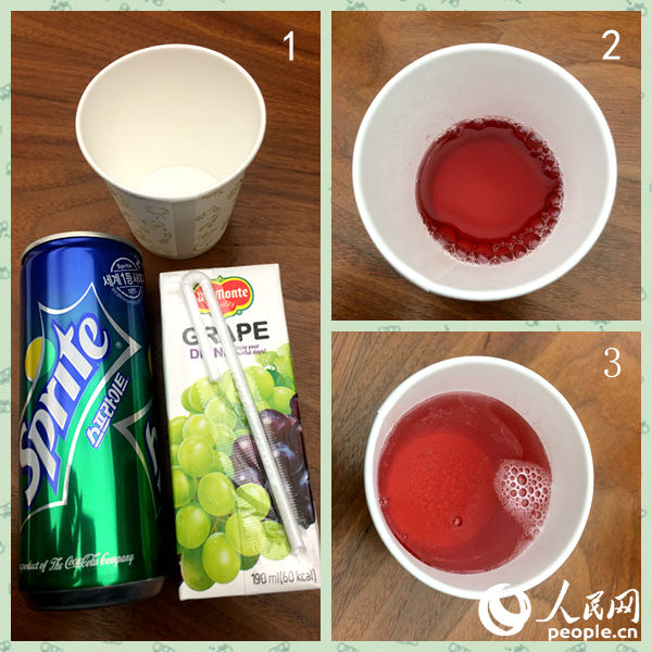 看了这么多美食,是不是口渴了呢?小编再教大家制作一款酸甜可口的饮料,那就是只需要葡萄汁和雪碧就可以调配出的起泡葡萄汁!
