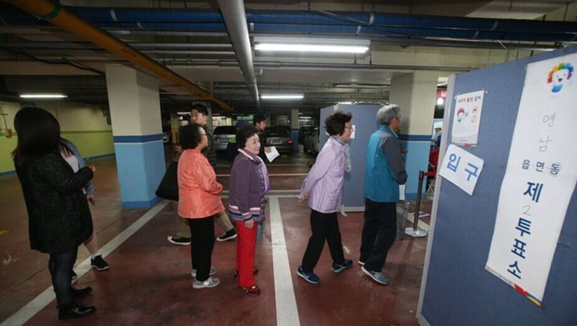 民众在地下停车场排队,准备投票(网页截图)