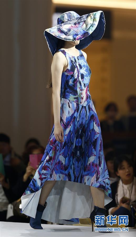 5月11日,模特在展示时装设计师陈闻的牛仔时装。当日,第十六届中国(青岛)国际时装周正式开幕,来自中国、韩国、日本、澳大利亚等多个国家和地区的时装设计师,将在为期5天的时装周期间进行30多个场次的时装发布。新华社记者 陈建力 摄