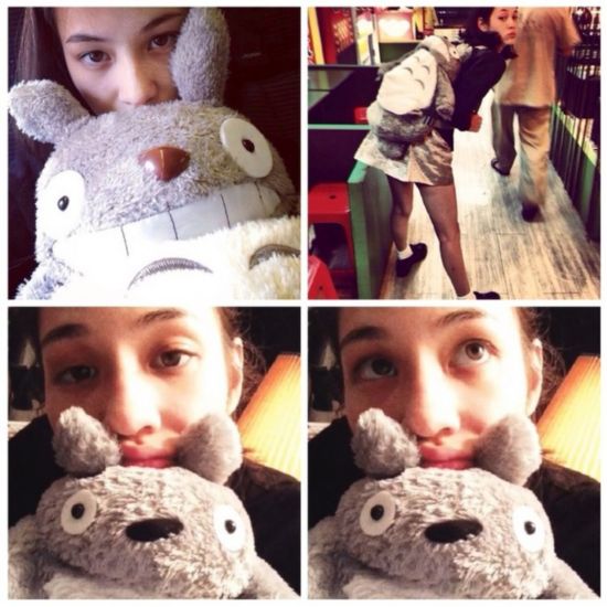 名模水原希子自拍四连发,嘟嘟嘴+龙猫玩偶的双重卖萌。