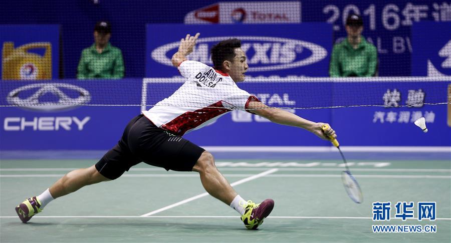 5月20日,印尼队选手克里斯蒂在比赛中回球。他在单打比赛中以0比2不敌韩国队选手孙完虎。当日,在江苏昆山举行的2016汤姆斯杯半决赛中,韩国队对阵印度尼西亚队。 新华社记者张晨摄