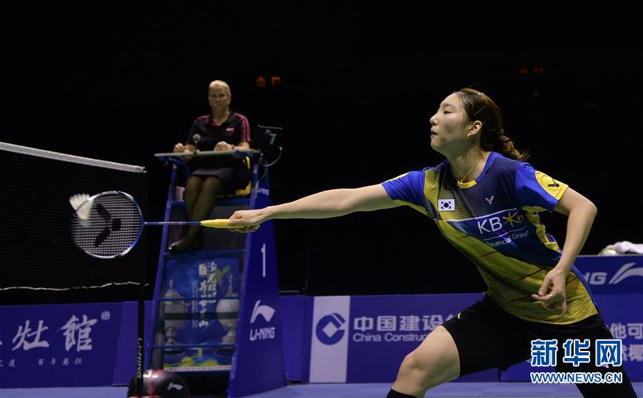 5月21日,韩国队选手成池铉在比赛中回球。她以1比2不敌中国队选手李雪芮。当日,在江苏昆山举行的2016尤伯杯决赛中,中国队对阵韩国队。 新华社记者季春鹏摄