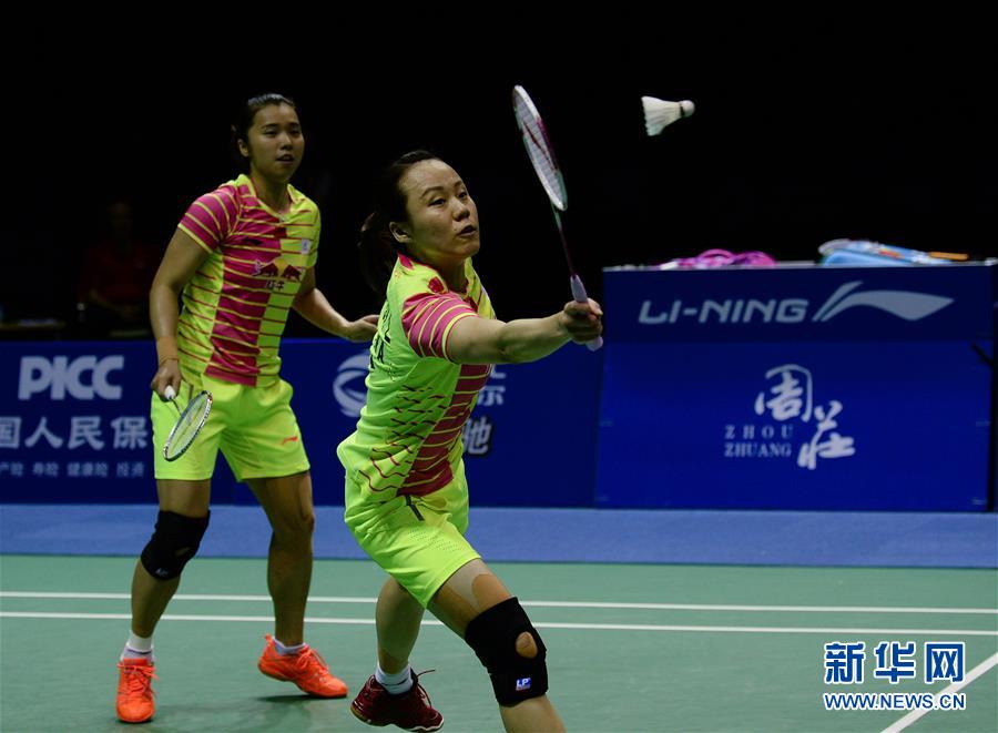 5月21日,中国队选手田卿/赵芸蕾(右)在比赛中。她们在双打比赛中对阵韩国队选手郑景银/申升瓒。当日,在江苏昆山举行的2016尤伯杯决赛中,中国队对阵韩国队。 新华社记者季春鹏摄