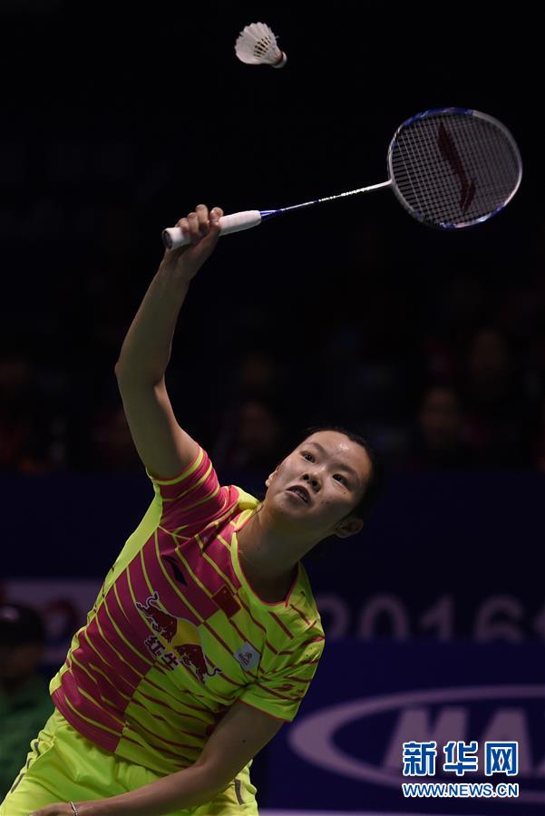 5月21日,中国队选手李雪芮在比赛中回球。她在单打比赛中以2比1战胜韩国队选手成池铉。当日,在江苏昆山举行的2016尤伯杯决赛中,中国队对阵韩国队。 新华社记者韩瑜庆摄