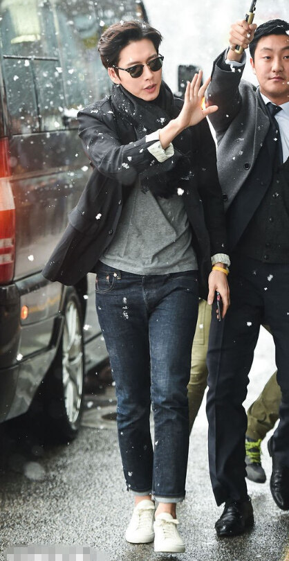 朴海镇冬季深色“围巾装”搭配小白鞋,寒冬也时尚帅气!