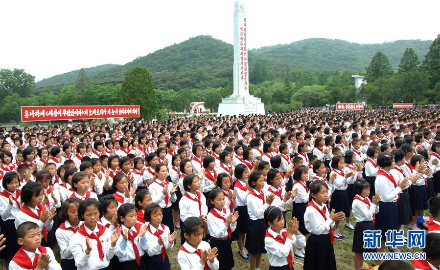 这张朝中社6月7日提供的照片显示的是朝鲜万景台少年团夏令营改建工程竣工仪式现场。朝鲜万景台少年团夏令营6月6日举行改建工程竣工仪式,并于当天开始首期夏令营。 新华社/朝中社