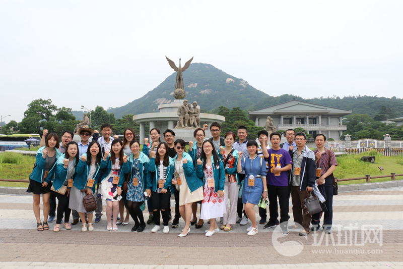 应韩国国际交流财团邀请,中国青年友好使者代表团一行180余人于6月20日至27日对韩国进行友好访问。图为代表团成员在韩国青瓦台舍廊房旁合影。