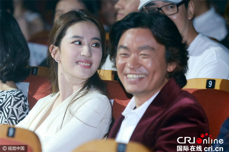 7月8日,刘亦菲着白裙现身似仙女,坐在台下用手轻抚下巴笑露齿,和旁边的王宝强热聊,宝强哥一脸憨笑。图片作者:马蜂/视觉中国