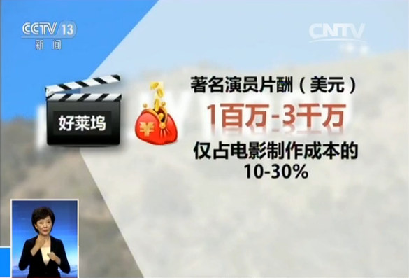 央视还就演员片酬问题采访了美国演员工会演出合同管理部的负责人,负责人表示,很多著名好莱坞演员的片酬从100万到3000万美元不等,演员的片酬在电影制作成本中仅占10%-30%,而如果电影在电视平台播出,演员还能获得3.6%的额外收入。