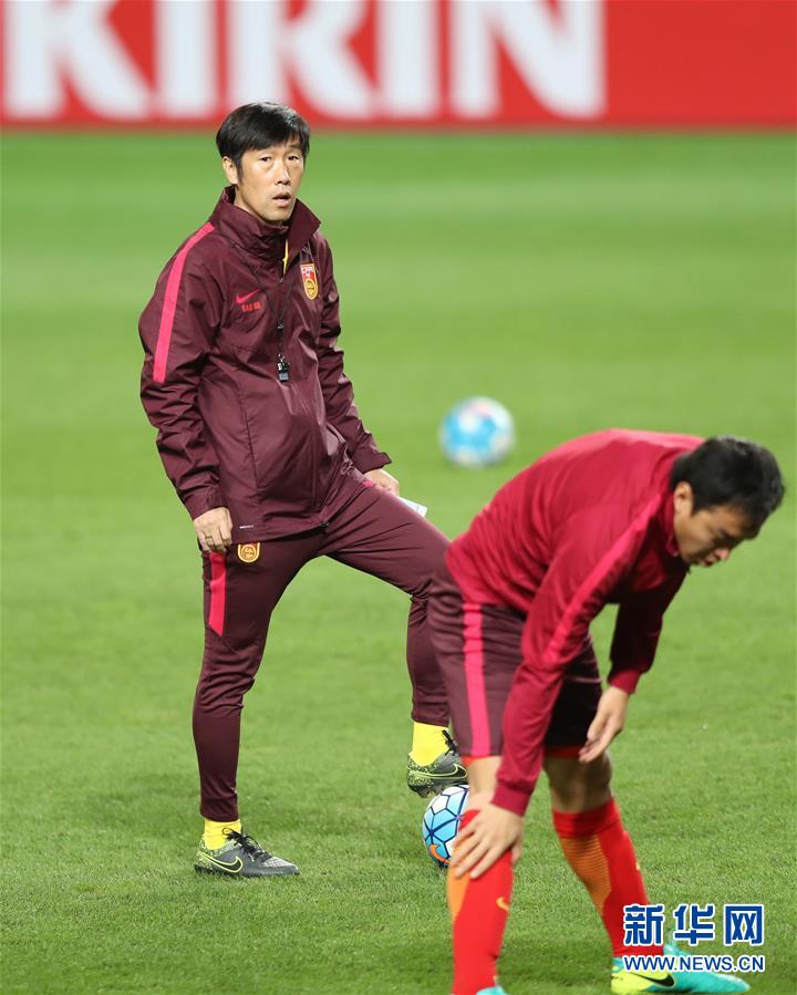 8月31日,中国队主教练高洪波(左)在训练前。当日,中国国家男子足球队在首尔世界杯体育场进行赛前训练,备战9月1日举行的2018年世界杯预选赛亚洲区12强赛与韩国队的比赛。新华社记者孟永民摄