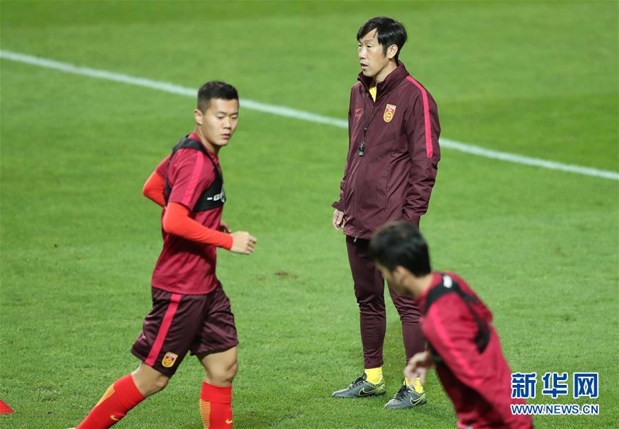 8月31日,中国队主教练高洪波(中)在训练中指导球员。当日,中国国家男子足球队在首尔世界杯体育场进行赛前训练,备战9月1日举行的2018年世界杯预选赛亚洲区12强赛与韩国队的比赛。新华社记者孟永民摄