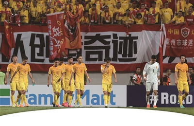 国足将士最终没能扳平比分还是很遗憾。视觉中国供图