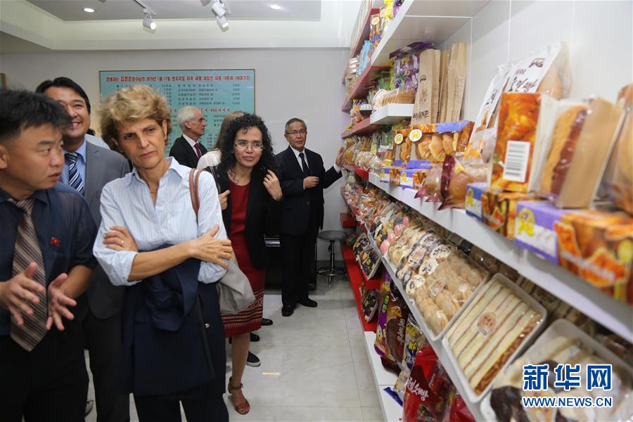 9月6日,在朝鲜平壤,驻朝鲜使团和国际机构代表参观金杯体育人综合食品厂产品展示厅。当日,驻朝鲜使团和国际机构代表受邀参观了位于平壤的平壤体育器材工厂和金杯体育人综合食品厂。平壤体育器材工厂位于青春大街体育村,建筑面积9980平方米,主要生产足球、篮球、排球和其他周边体育产品,为人们提供优质的国产化体育器械。金杯体育人综合食品厂于今年年初完成翻新改造,目前生产包括饼干、糕点、饮料在内的多种食品。新华社记者郭一娜摄