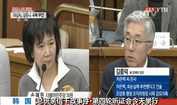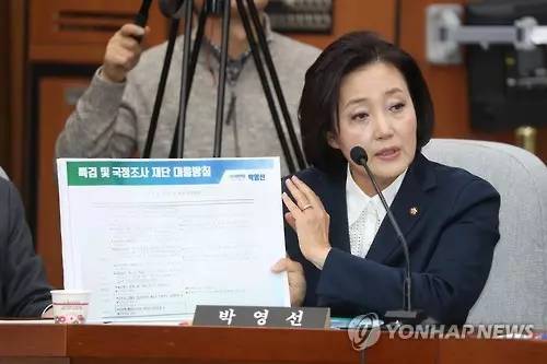 △在第四轮听证会上,共同民主党议员朴映宣发问(图自韩国媒体)