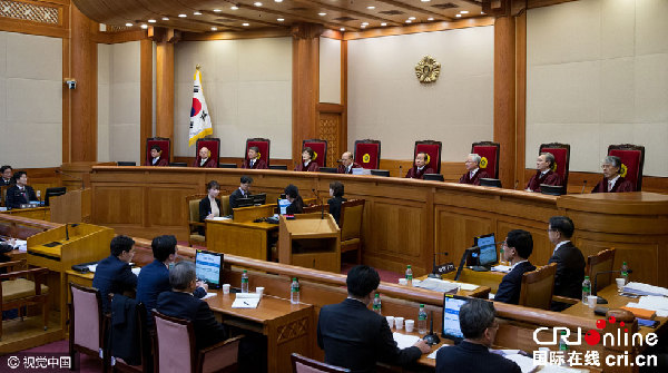 资料图:当地时间2017年1月3日,韩国首尔,宪法法院开审朴槿惠弹劾案。图片来源:视觉中国