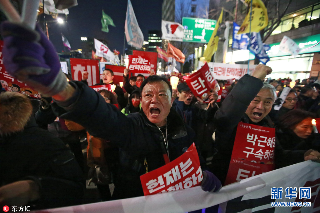 当地时间2017年3月9日,韩国首尔,民众举行烛光集会支持弹劾总统朴槿惠。据悉,韩宪法法院将于10日上午宣判弹劾案结果。图片来源:东方IC